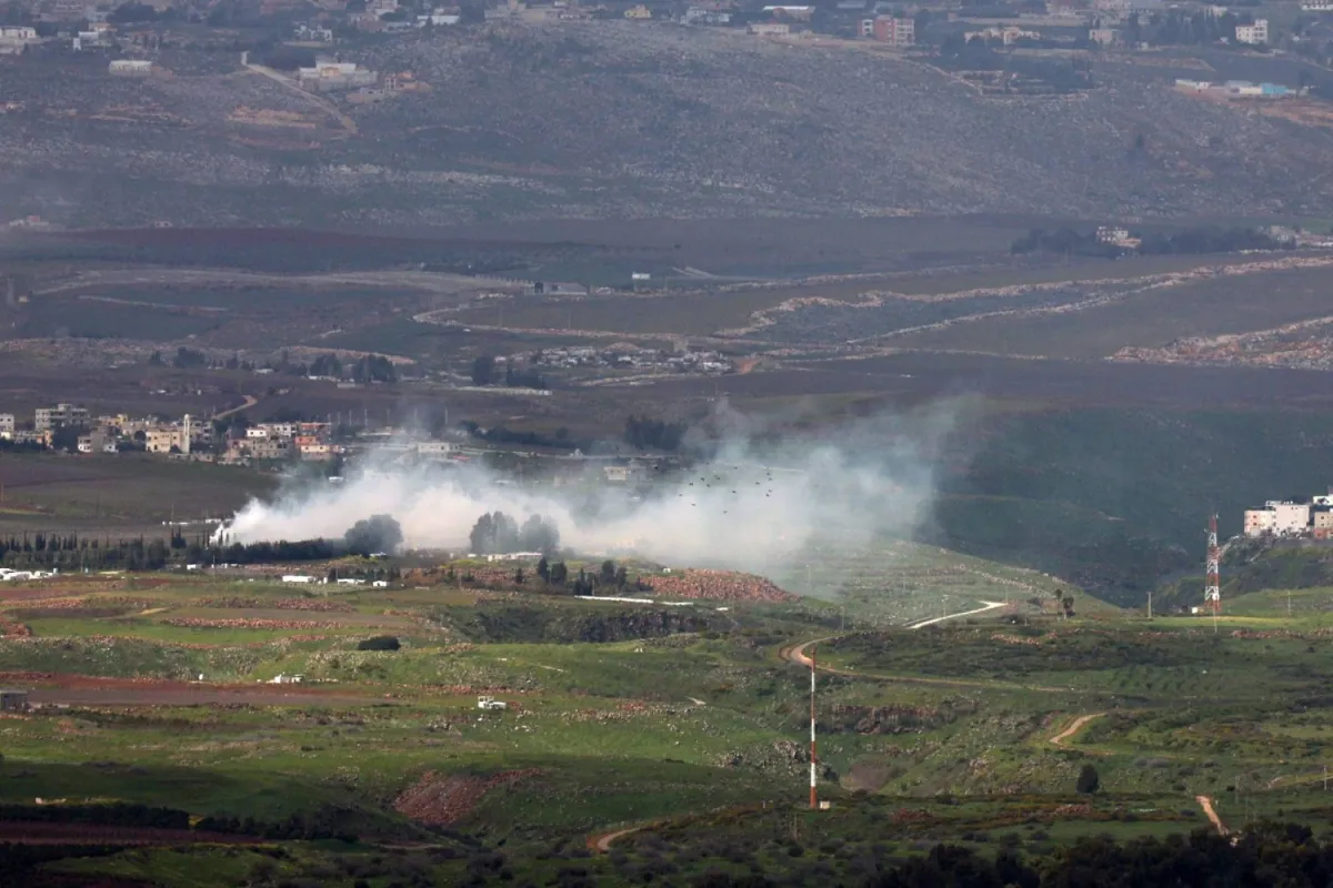 İsrail’in Lübnan’ın güneyinde yer alan Arab el-Luveyze düzenlediği hava saldırısının ardından yükselen dumanlar sınırın İsrail tarafından böyle göründü (EPA)