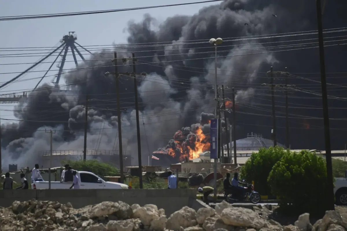 Hızlı Destek Kuvvetleri'nin Port Sudan'ın kuzey limanını hedef alan drone saldırılarının ardından yoğun duman yükseldi (AP)