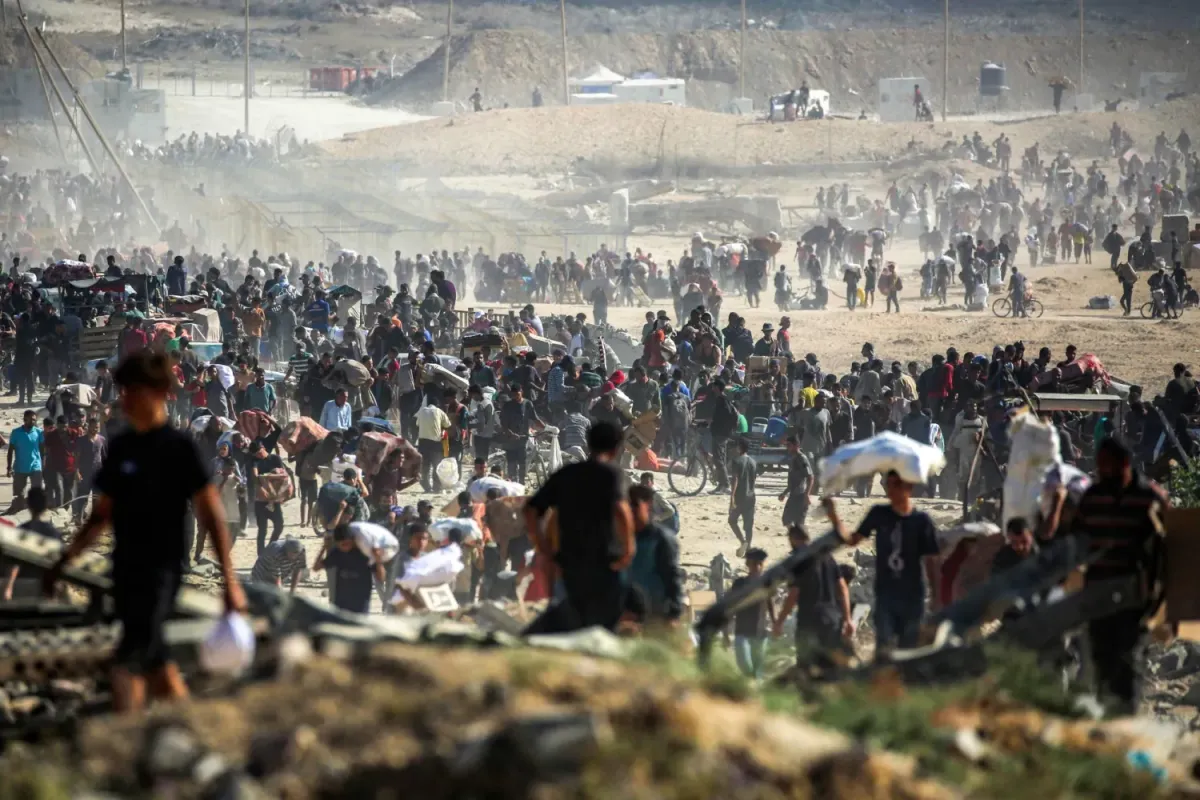 Dün Gazze Şeridi'nin orta kesimlerindeki Nuseyrat Mülteci Kampı’nda ABD ve İsrail destekli Gazze İnsani Yardım Vakfı tarafından işletilen bir merkezden aldıkları insani yardımları taşıyan Filistinliler (AFP)