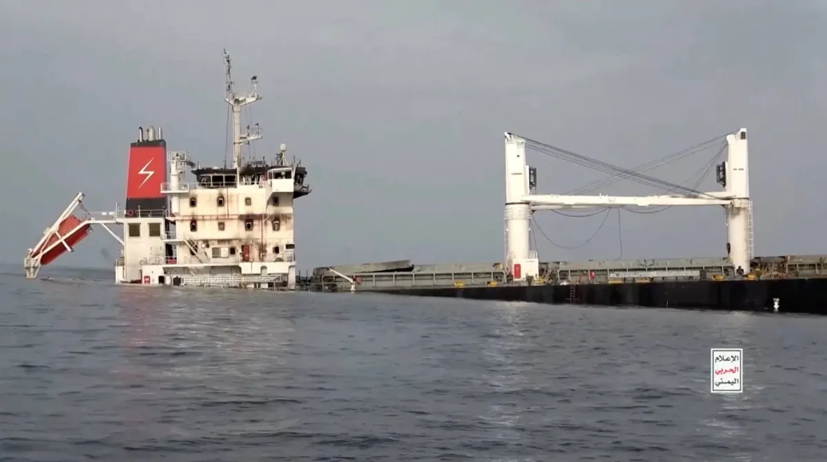 Yemen'deki Husi isyancılarının 9 Temmuz 2025'te yayınladığı bir videoda, Yunan nakliye şirketine ait olduğu düşünülen Liberya bayraklı bir gemi Kızıldeniz'de battığı görülüyor. (Reuters)