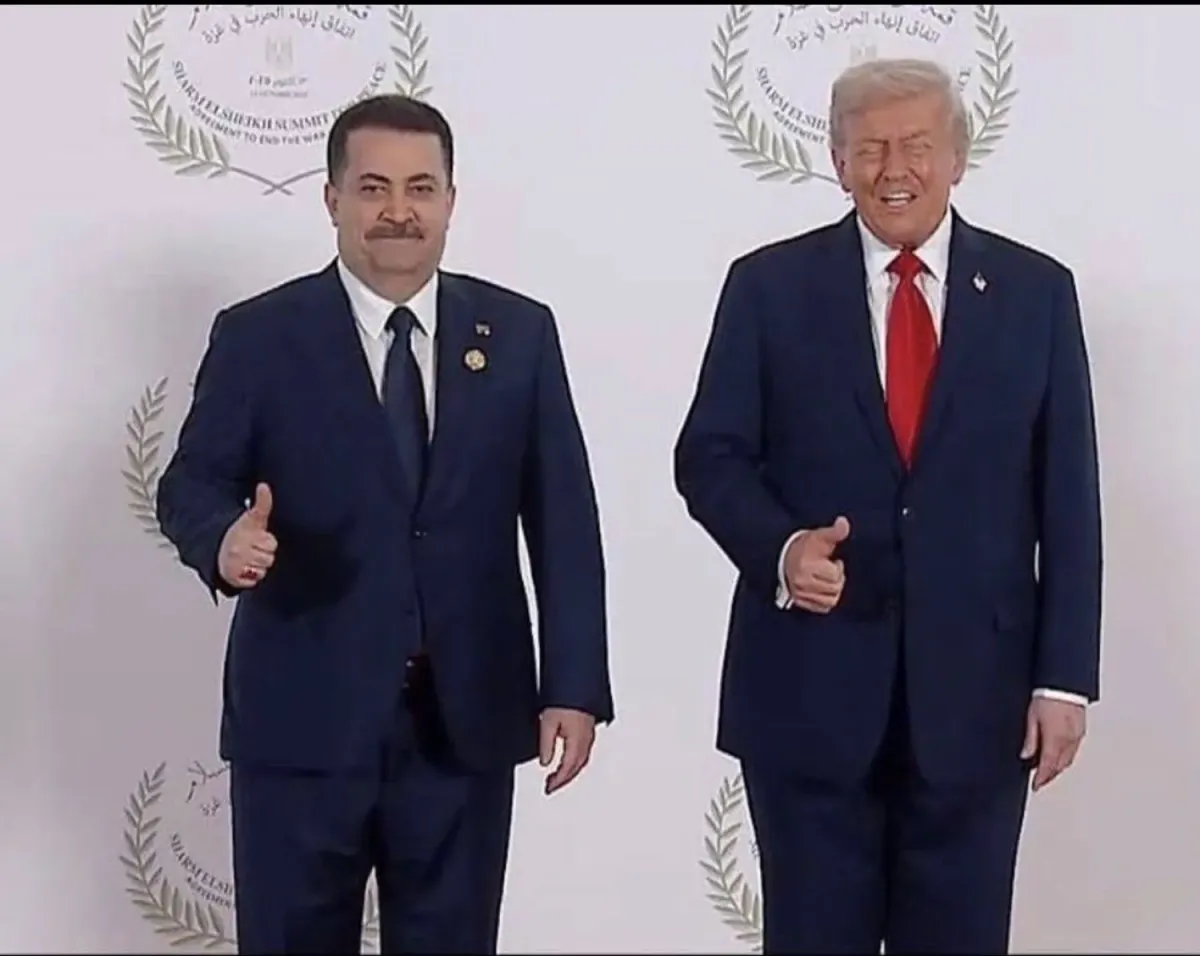 ABD Başkanı Donald Trump ve Irak Başbakanı Muhammed Şiya es-Sudani, Şarm el-Şeyh zirvesi sırasında (Hükümet medyası)