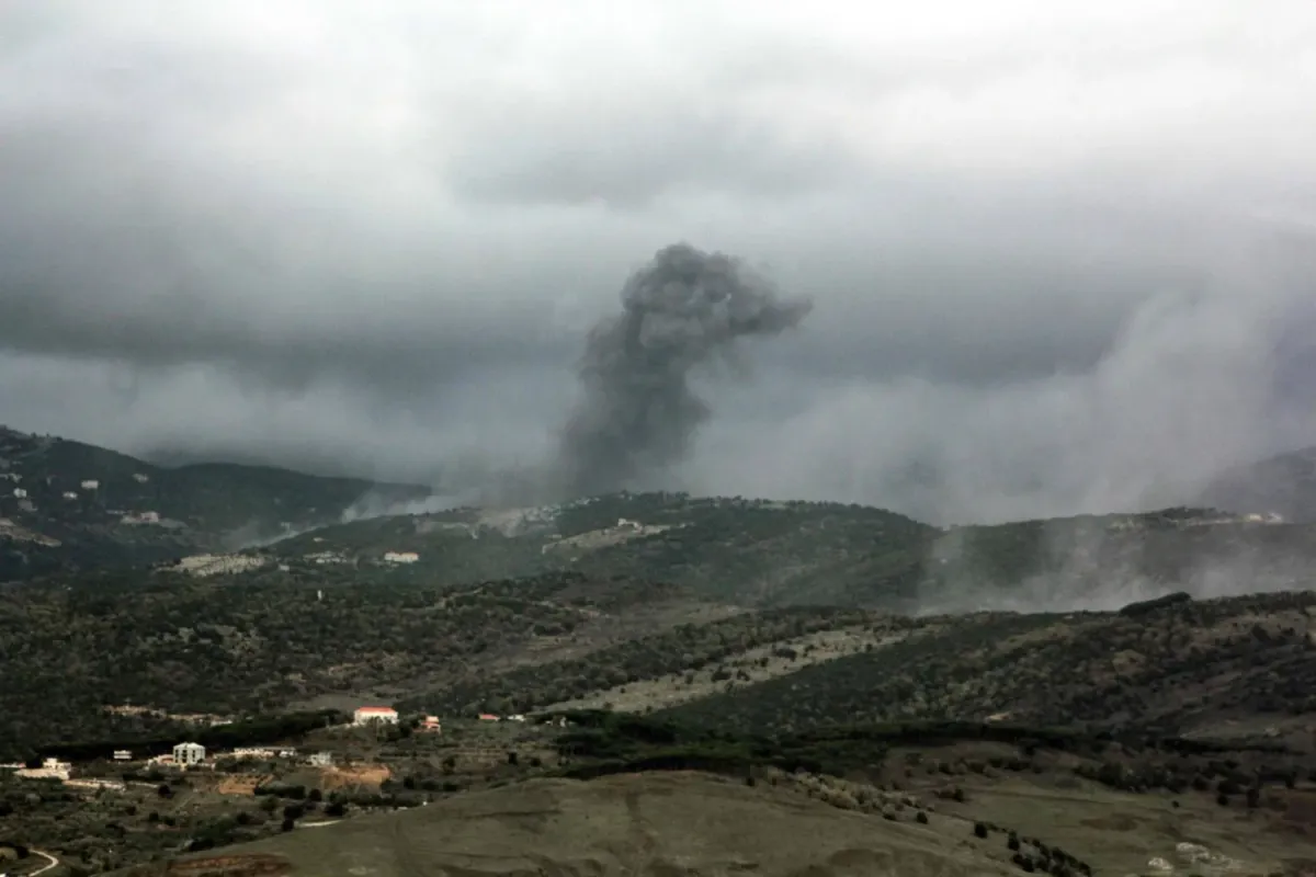 İsrail'in Lübnan'ın güneyindeki Rihan Dağı zirvelerini hedef alan hava saldırısının ardından yükselen dumanlar - 9 Ocak 2026 (AFP)