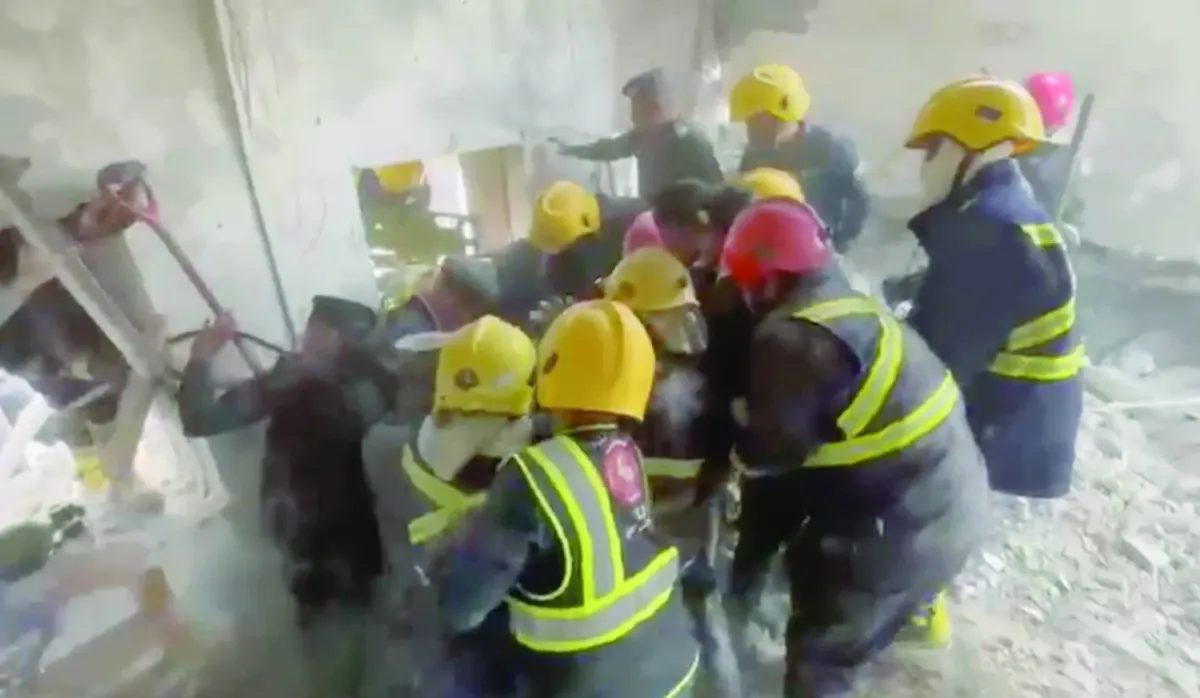 Irak'ın batısındaki bir askeri kliniğe düzenlenen hava saldırısının yol açtığı yıkımın bir bölümü (AFP)