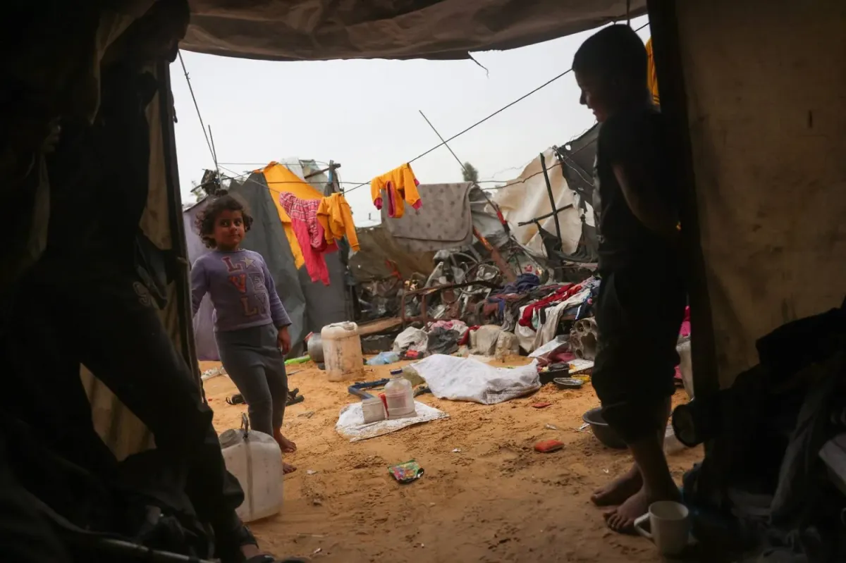 Gazze şehrinde yıkılmış binaların enkazı arasında kurulan bir çadır kampı (AFP)