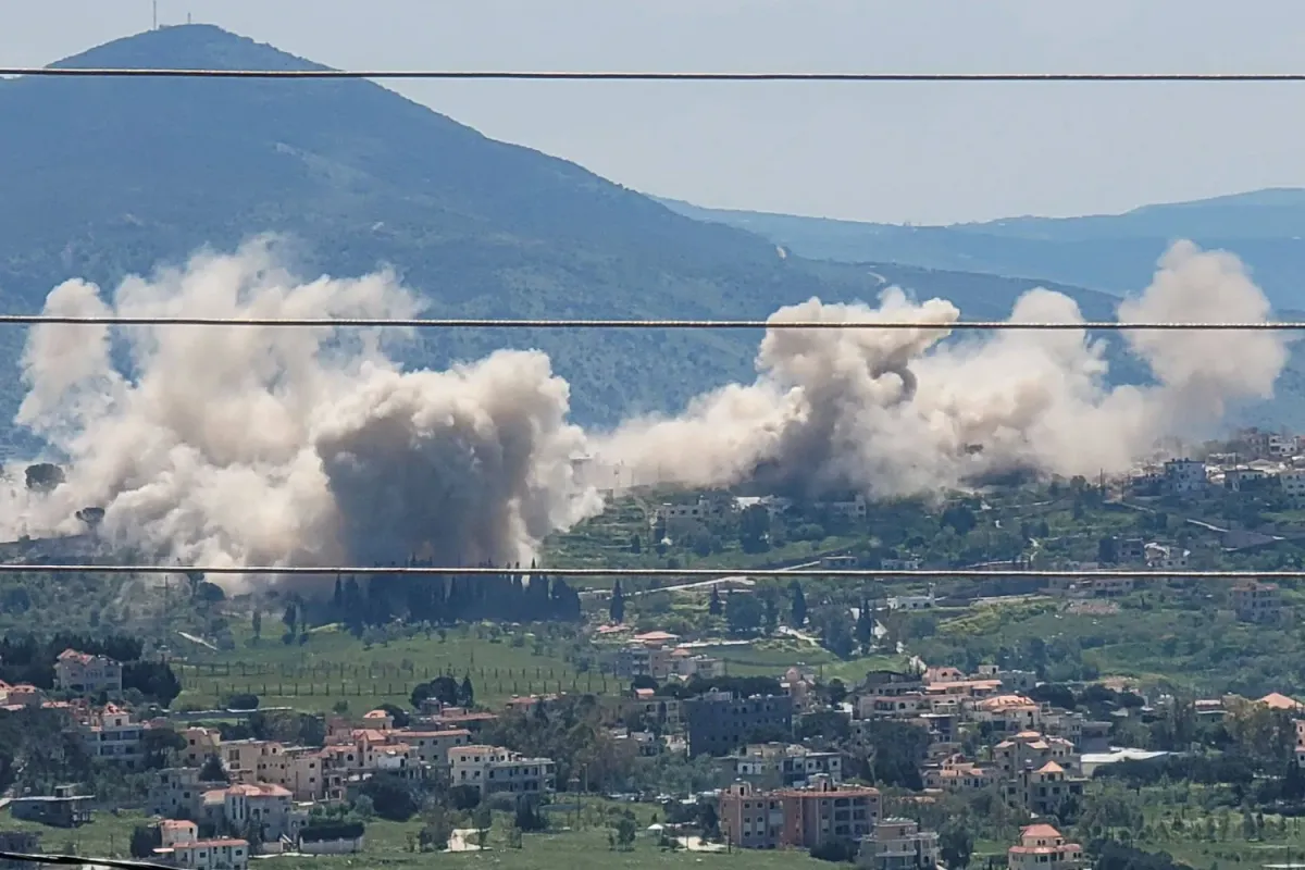 Lübnan'ın güneyindeki el-Hayam köyünde meydana gelen patlamalardan sonra yükselen duman (AFP)