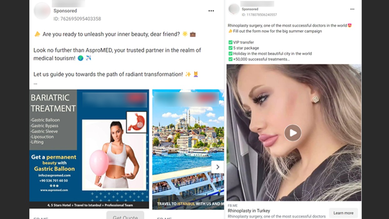 Bir başka şirketin reklamındaysa burun estetiği ameliyatları ön plana çıkarıldı. "Dünyanın en başarılı doktorlarından birinin" operasyonu gerçekleştireceği vaadi, 5 yıldızlı paket tatille birlikte sunuldu.