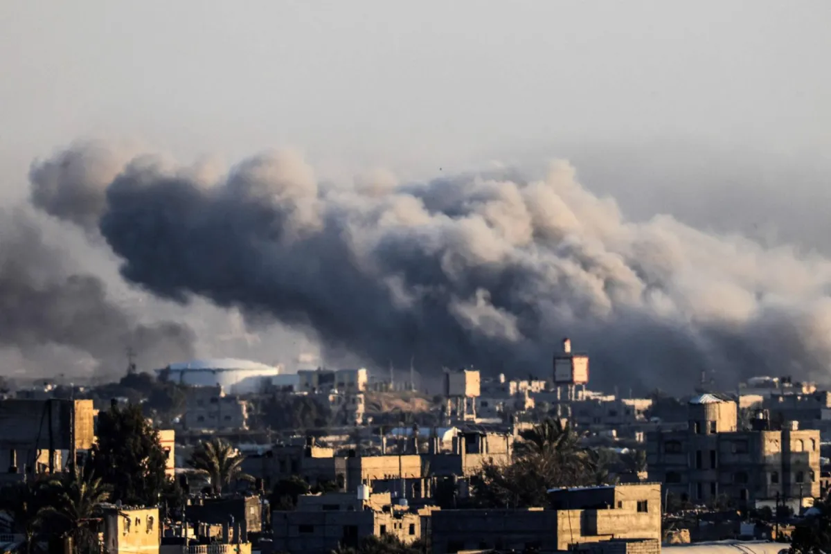 İsrail’in Gazze Şeridi’nin güneyindeki Han Yunus’a saldırısı sırasında dumanlar yükseliyor (AFP)