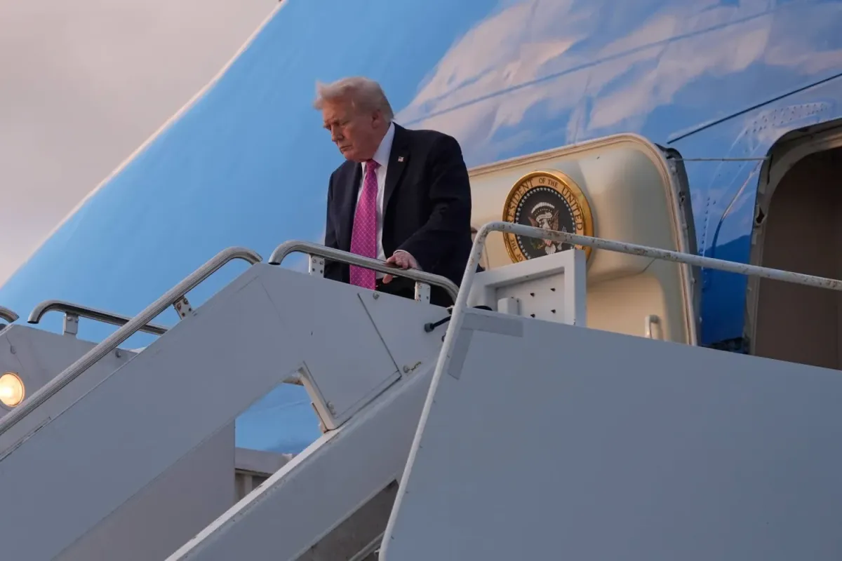 Trump, geçtiğimiz cuma günü Palm Beach Uluslararası Havalimanı'nda Air Force One uçağından inerken (AP)