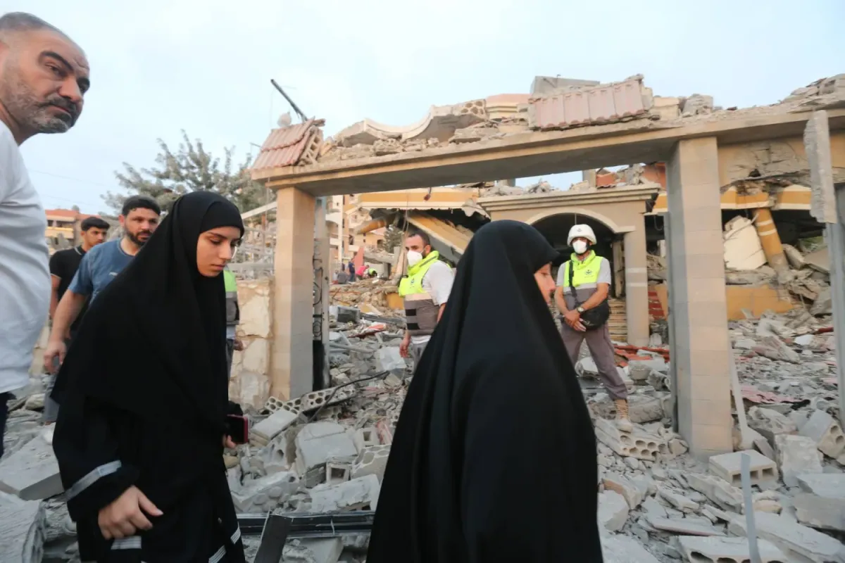 Lübnanlılar, perşembe günü Güney Lübnan'ın Sur kentinde İsrail hava saldırısında yıkılan bir binanın yakınında yürüyor (EPA)