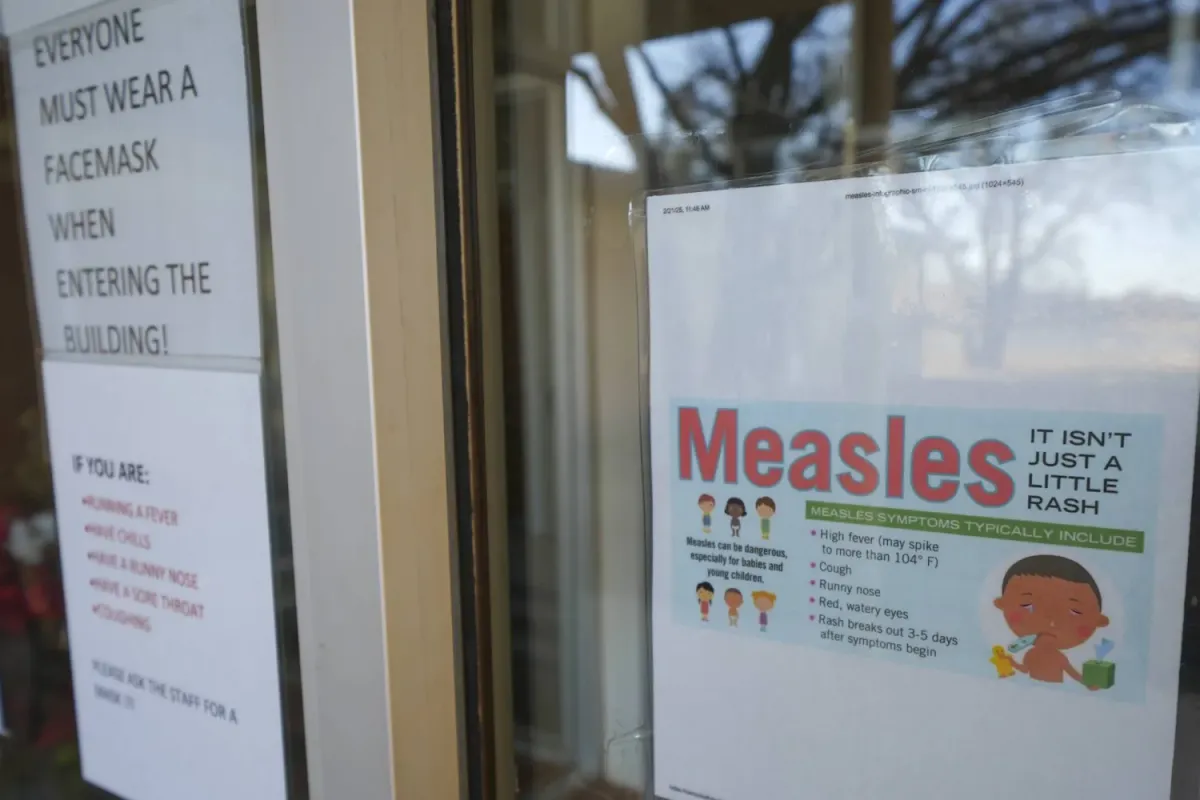 ABD'nin Teksas eyaletindeki bir kliniğin dışında kızamığa ilişkin bir tabela asılı (AP)