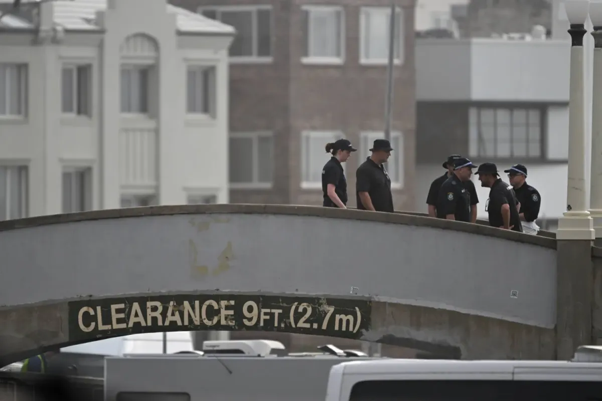 Adli tıp uzmanları, Sydney'deki Bondi Plajı'nda silahlı saldırganların ateş açtığı köprüde duruyor (EPA)