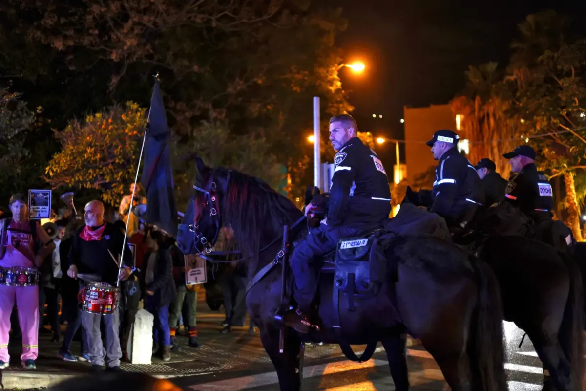 İsrail'de atlı polis memurları, 10 Şubat 2026'da Hayfa'da İsrail Araplarının düzenlediği bir gösteri sırasında (AFP)