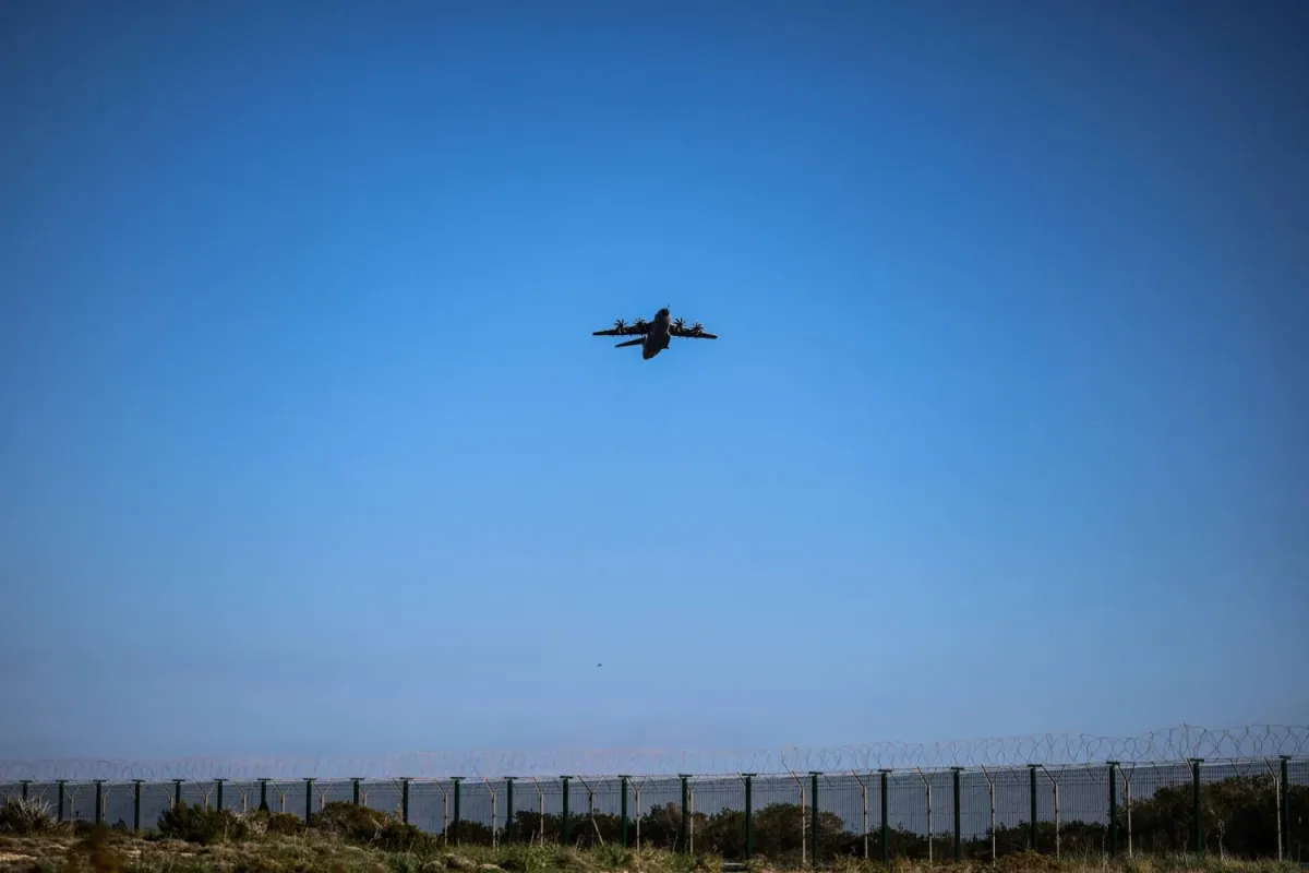 Kıbrıs'taki Akrotiri'de bulunan ve dün gece İHA’ların saldırısına uğrayan İngiliz Kraliyet Hava Kuvvetleri üssünden kalkış yapan bir uçak... 2 Mart 2026 (Reuters)