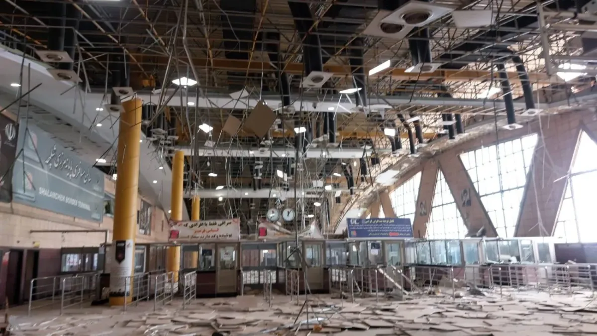 Şelemçe sınır geçişindeki yolcu karşılama salonu, hava saldırısının ardından (WAA)