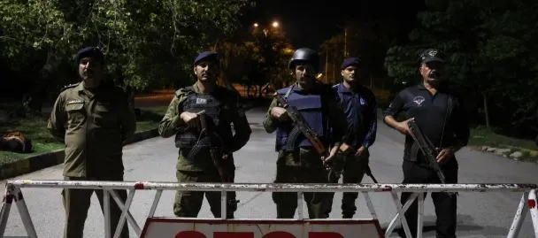 İslamabad'da ABD ve İran heyetlerinin görüşme yapması beklenen Serena Oteli'ne giden yolda bir polis memuru nöbette (Reuters)