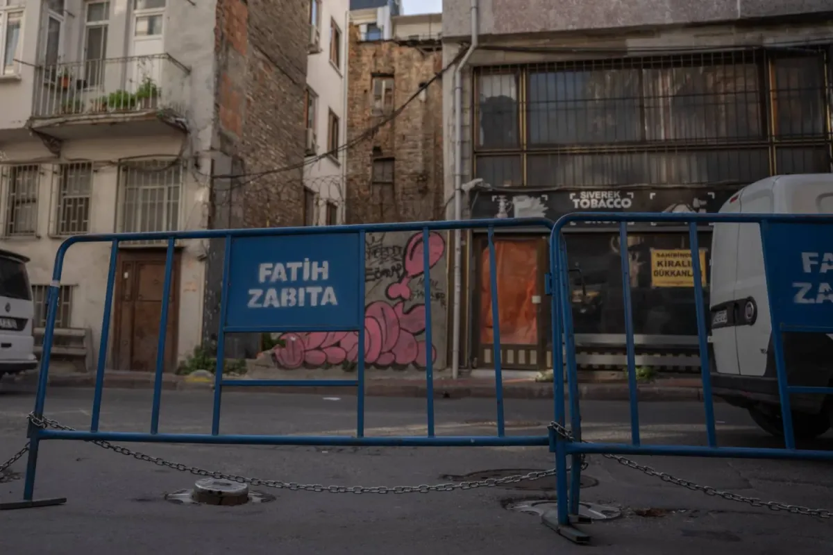 Ölen üç Alman turistin kaldığı Fatih ilçesindeki otelin yakınına İstanbul polisi tarafından güvenlik kordonu oluşturuldu (DPA)