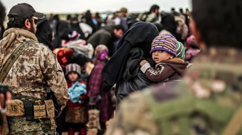 Suriye Demokratik Güçleri savaşçıları Bagoz’daki sivilleri tahliye ederken (AFP)