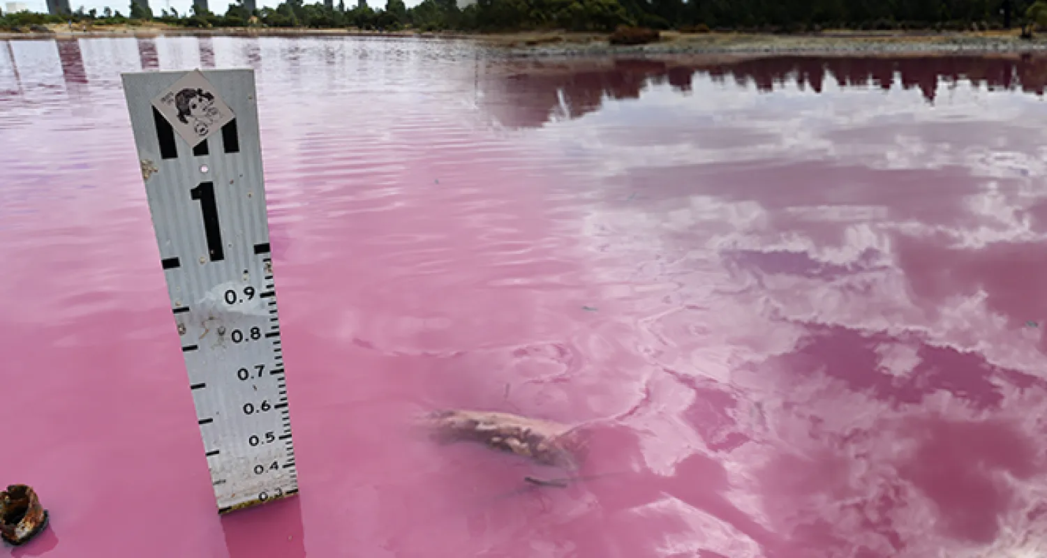 Avustralya'nın başkenti Melbourne'ın Westgate Parkı'nda yapay bir göl pembeye döndü. Yılın belirli zamanlarında pembeye dönene göle, bu yıl da çok sayıda ziyaretçi geliyor. Çok fazla güneş ışığı, düşük yağış ve ılık sıcaklıklara maruz kalan gölün algleri beta karoten maddesi üreterek pembe bir pigment ürettiği belirtiliyor.