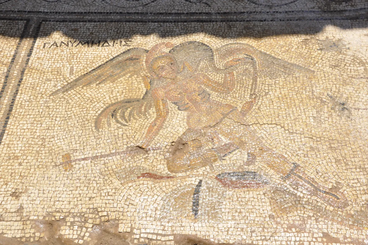 Bulunan latrinas hakkında da bilgi veren Hoff şunları söyledi: “Bu senenin en önemli buluntularından bir tanesi Latrinas adı verilen tuvaletlerin zemine resmedilmiş mozaikler. Burası sadece erkeklere özel bir bölüm. Bu tuvaletin tabanı mozaik kaplı. Burada antik dönemden mitolojiden bazı sahneler resmedilmiş. Normalde buralar pis yerler oldukları için mitolojide kötü tehlikeli şeylerle bağdaştırılırlar. Buradaki Latrinada ise yapılan mozaiklerde bu konularda dalga geçilmiş. Çalışmalarımızda iki sahne ele geçirdik. Birisi tam olarak duruyor ama bir tanesi biraz tahrip olmuş durumda. Bir sahnede mitolojideki Ganymedes’in Zeus tarafından kaçırılma sahnesi yer alıyor. Ganymedes yakışıklı güzel bir çocuk. Zeus da kartal kılığına girerek Olympos’taki sarayına kendilerine şarap servisi yapsın diye kaçırıyor. Sahnemizden birisi bu. Fakat Zeus normalde kartal olmasına rağmen burada balıkçıl bir hayvan gibi resmedilmiş. Yani onunla alay edilmiş. Diğer sahnede ise Narkissos var. Narkissos kendisini çok güzel çok çekici ve yakışıklı bulan bir karakter. Lanetleniyor ve kendisinin sudaki yansımasına aşık olarak, ona bakmaktan kendini alamayarak burada ölüyor. Ve narsistik de buradan geliyor. Fakat Narkissos mitolojide çok yakışıklı ve beğenilen birisi olmasına rağmen bu mozaiğimizde o kadar yakışıklı tasvir edilmemiş. Karga burunlu göbekli yani çirkin diyebileceğimiz bir figüre sahip. Buradaki halkında bu olaylara karşı bakış açısını tuvalette iken bunlarla eğlendiğini ve onlarla dalga geçtiğini anlamamızı sağlıyor. Bu yönüyle de nadir bulunan mozaiklerden birisidir.”