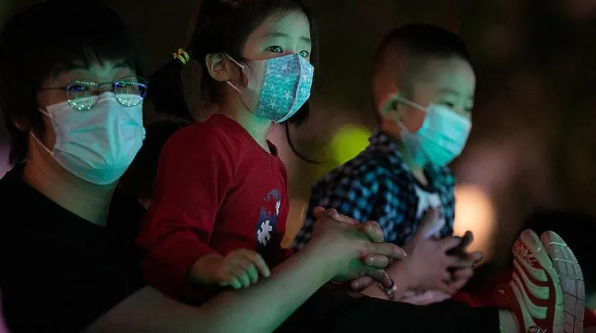 Pekin’de akşam vakti açık havada vakit geçiren Çinli bir aile (AP)