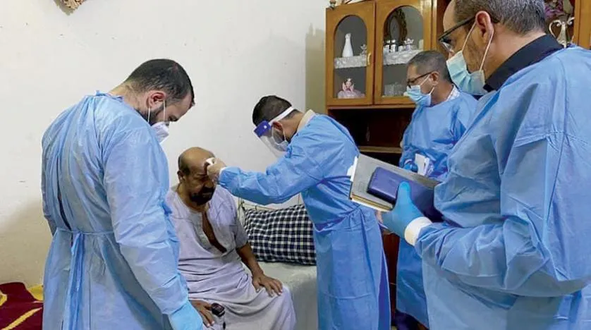 El-Karh’taki Saba el-Bur Merkezi’nde bir koronavirüs vakasının durumunu takip eden sağlık çalışanları. (Irak Sağlık Bakanlığı Twitter)