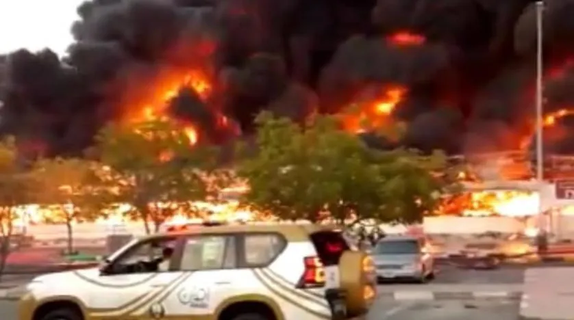 Ajman Emirliği'nde popüler bir pazarda çıkan ve sosyal medya kullanıcıları tarafından paylaşılan bir yangının resmi