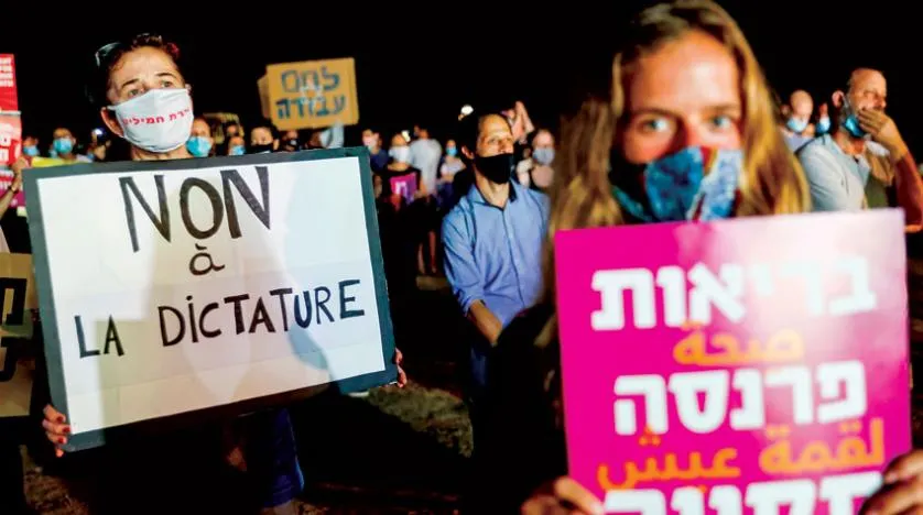 Tel Aviv’deki Netanyahu karşıtlığı çeşitli dillere çevriliyor (AFP)