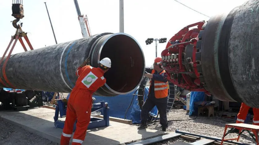 Putin'in Avrupa'ya karşı en önemli stratejik silah olarak gördüğü doğalgaz boru hattının inşa edildiği St. Petersburg’da yürütülen bölgesi. (Reuters)