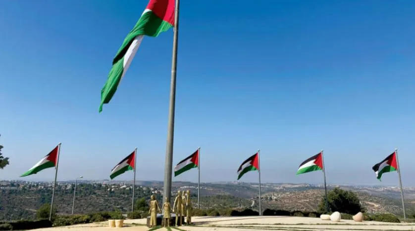 Batı Şeria'daki yeni Ravabi şehrinde dalgalanan Filistin bayrakları (Reuters)