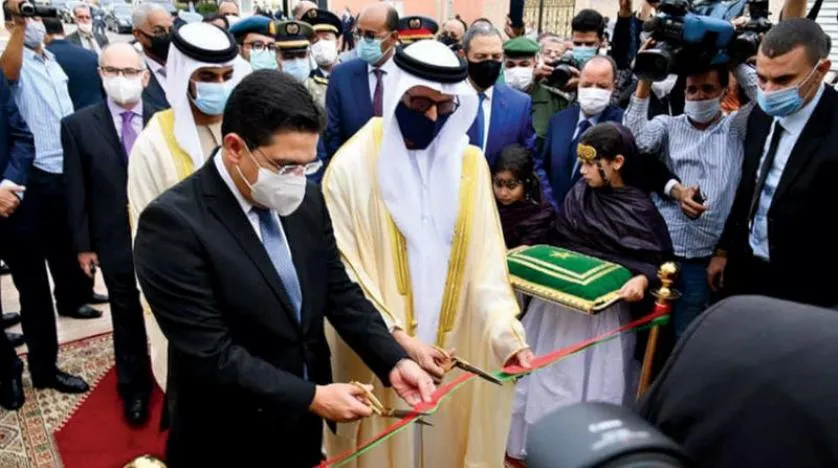Fas Dışişleri Bakanı, BAE’nin Fas Büyükelçisi ile birlikte dün, Layun’da konsolosluk açılışında (Fas Dışişleri Bakanlığı)