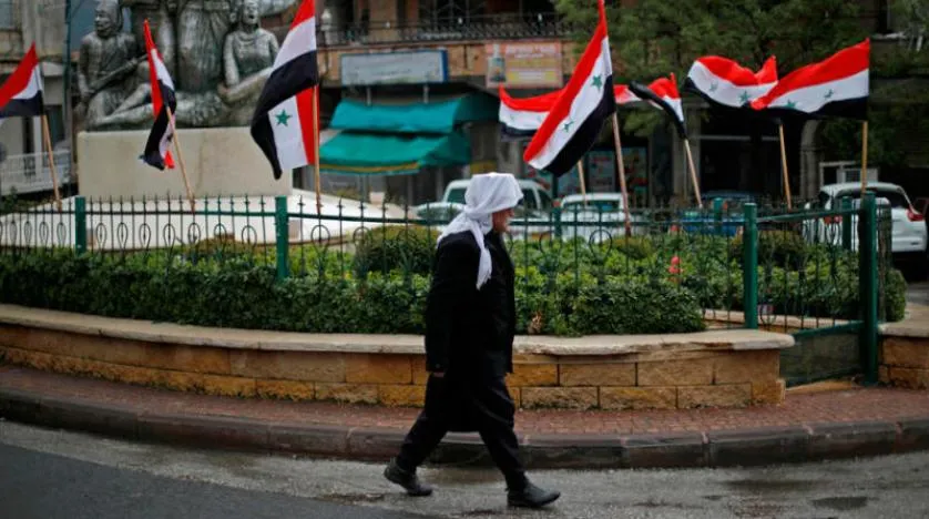 İşgal altındaki Golan'da bulunan Mecdel Şems köyündeki Suriye bayrakları. (AFP)