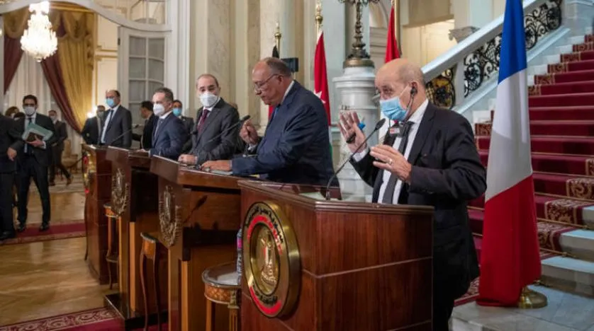 Mısır, Ürdün, Fransa ve Almanya Dışişleri Bakanları Pazartesi günü Kahire’de basın toplantısı gerçekleştirdi (AP)