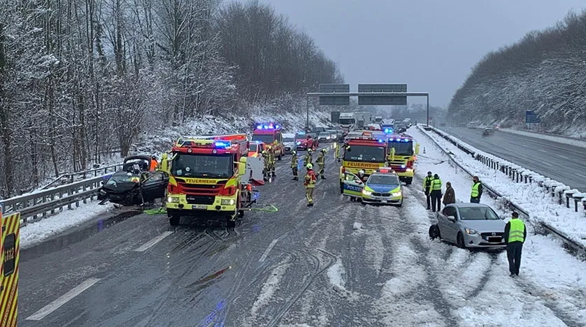 Almanya'da aniden bastıran kar yağışı otoyolarda trafiği felç ederken, çok sayıda trafik kazasına neden oldu.