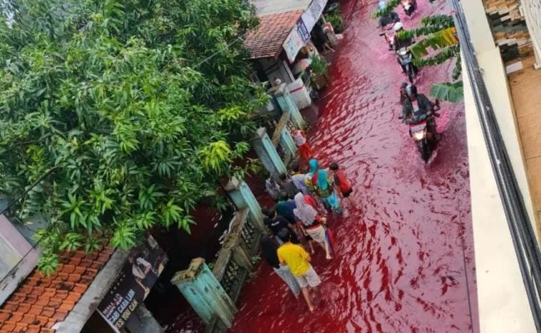 Endonezya’nın Orta Cava eyaletine bağı Pekalongan kentinde şiddetli yağmurlar sele yol açtı. Cadde ve sokaklarda su baskınları meydana gelirken, sel suları kumaş fabrikasından sızan boya atıkları ile karışınca ortalık kan kırmızısına büründü. Jenggot köyünde sokaklar kırmızıya dönünce sosyal medya kullanıcıları o anları kaydederek şaşkınlığını dile getirdi. Pekalongan’dan acil durum yetkilisi Dimas Arga Yudha sosyal medyadaki görüntüleri doğrulayarak, "Kırmızı sel suları, selin karıştığı batik boyadan kaynaklanıyor. Bir süre sonra yağmurla karıştığında yok olacak" ifadelerini kullandı.