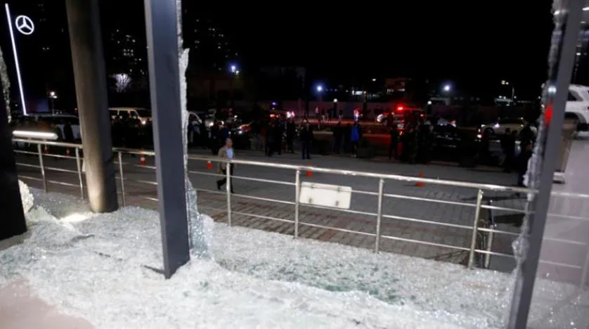 Pazartesi akşamı Erbil’e düzenlenen füze saldırısında kentteki bir araba satış mağazasının ön camları kırıldı (Reuters)