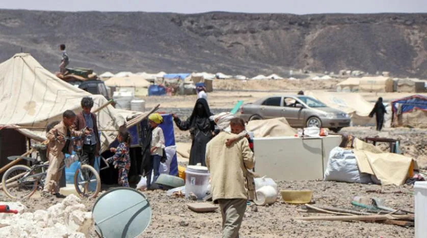 Husilerin askeri hamlelerine tanık olan Marib'deki bir mülteci kampı. (AFP)