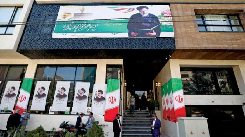 Cumhurbaşkanı adayı İbrahim Reisi'nin Tahran'daki seçim kampanyası merkezi önünde dün çekilen bir fotoğraf (AFP)