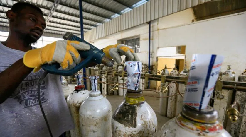 Hartum’da oksijen tüpü hazırlanan bir tesis. (Reuters)