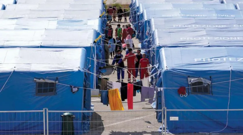 İtalya’nın orta kesimindeki Avezzano’da Kızıl Haç tarafından yönetilen mülteci kampındaki Afganlar. (AP)