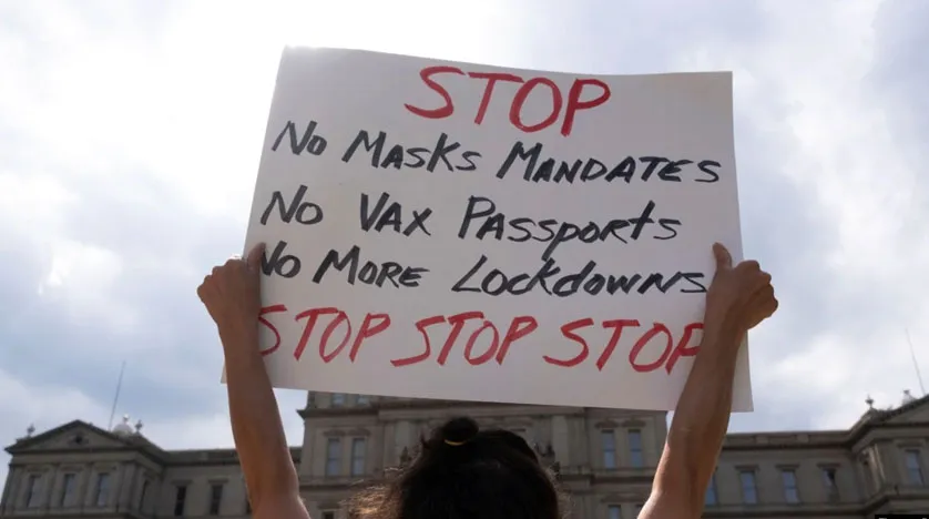 8 Eylül 2021 - Michigan'da aşı karşıtı protestodan bir kare (Reuters_Arşiv)