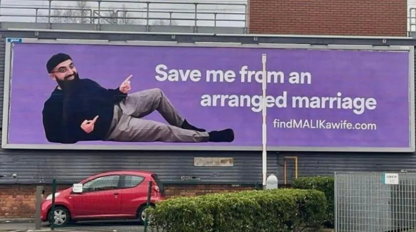 Ailesinin istediği şekilde görücü usulü evlenmek istemeyen Malik (29), yaşadığı Birmingham şehirdeki reklam panolarına eş bulmak için ilan verdi.