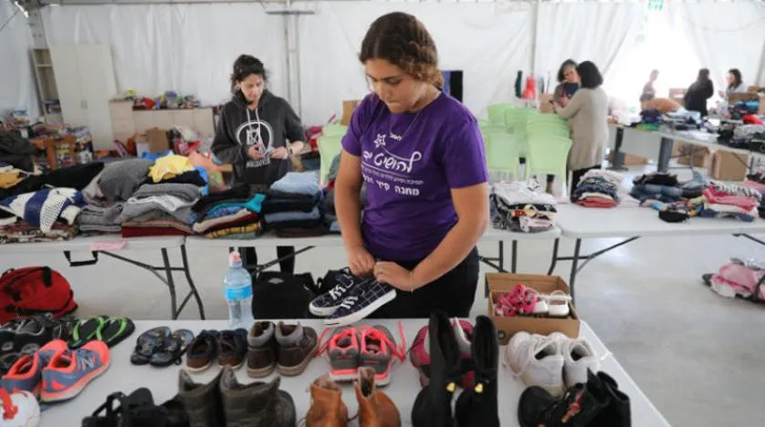İsrailli gönüllüler, Kudüs yakınlarındaki Ukraynalı Yahudi yetim mülteciler için kıyafet hazırlıyor. (AFP)
