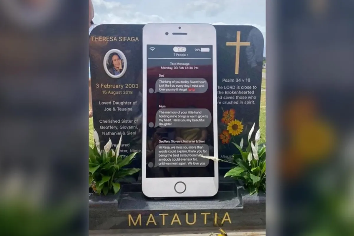 Yeni Zelandalı Theresa Matautia için yaptırılan iPhone şeklindeki mezar taşı TikTok'ta paylaşılınca viral oldu.