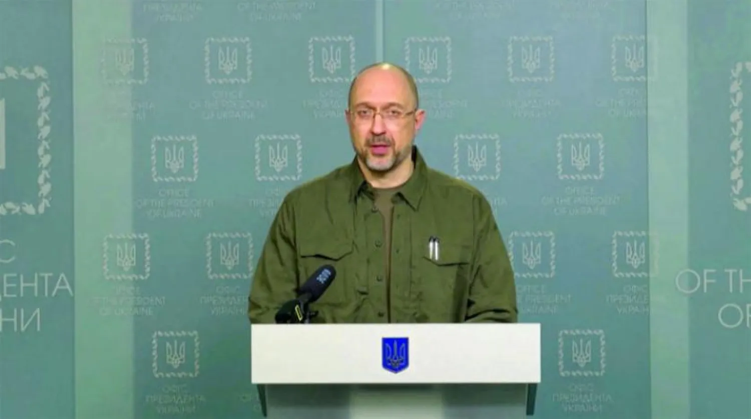 Ukrayna Başbakanı Denis Şmihal 24 Şubat’ta Kiev’de düzenlediği basın toplantısında (Reuters)