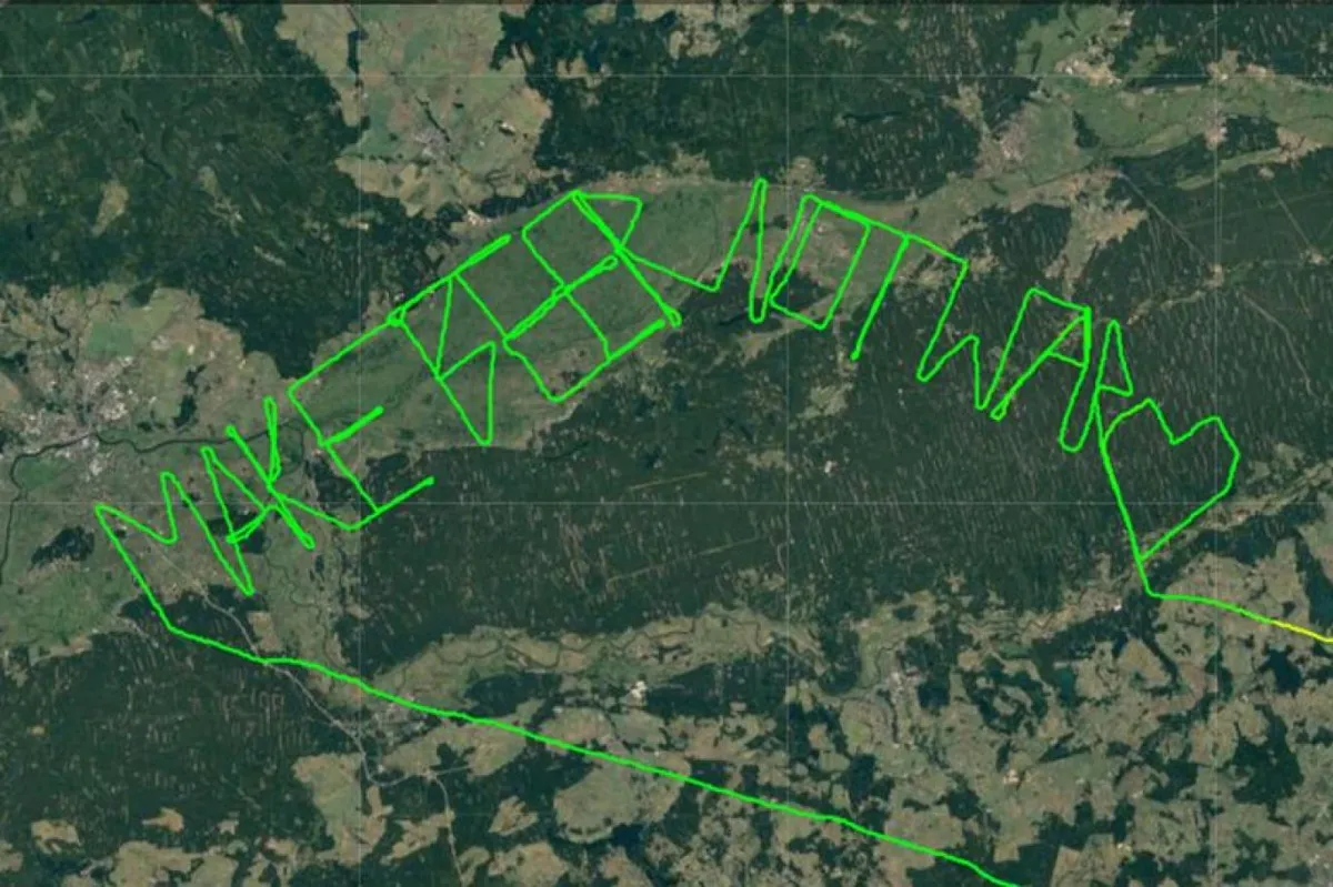 Kimliği belirsiz bir pilot, Rusya - Ukrayna savaşına tepkisini uçuş rotasıyla gökyüzüne yazı yazarak gösterdi.