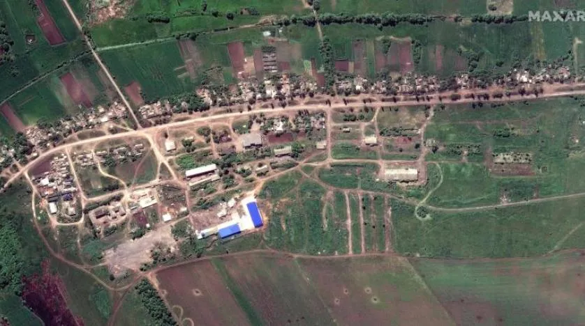 Maxar şirketine ait bir uydu tarafından çekilen bir görüntülerde, Lyman kasabası yakınlarındaki Kolodiazy köyünde konuşlandırılan kuvvetler ve mekanizmalar görülüyor (AFP)
