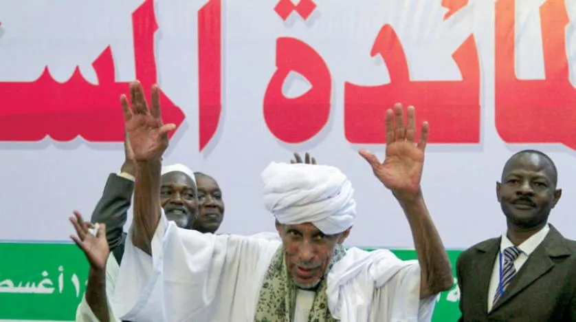 Burhan’ın desteklediği ve muhalefetin boykot ettiği “Ulusal Mutabakat için Sudan Halkının Çağrısı” girişimi konferansına katılan girişimin lideri ve Sufi tarikat şeyhi Tayyib el-Ced Ved Bedr (AFP)