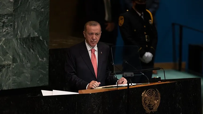 Cumhurbaşkanı Recep Tayyip Erdoğan, Birleşmiş Milletler (BM) Genel Kurul Salonu'nda BM'nin 77. Genel Kurulu görüşmelerinde katılımcılara hitap etti.