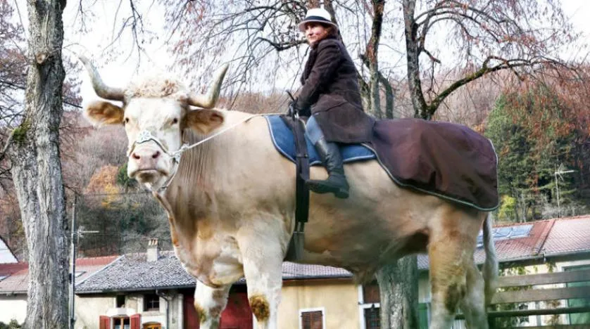 Sabine Rouas, doğu Fransa'nın Meuse bölgesindeki bir köyde, sabahın erken saatlerinde sakin bir tempoda ilerleyen boğası Aston'un sırtında geziniyor. Şarku’l Avsat’ın AFP’den aktardığına göre bu boğa adeta fenomen haline geldi. Sosyal medyada adına açılmış hesapları 10 binlerce kişi takip ediyor.