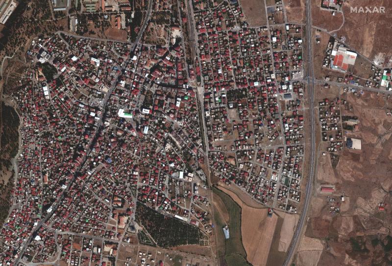 Depremden sonra Nurdağı ilçe merkezi, 7 Şubat 2023 (Uydu görüntüsü ©2023 Maxar Technologies)